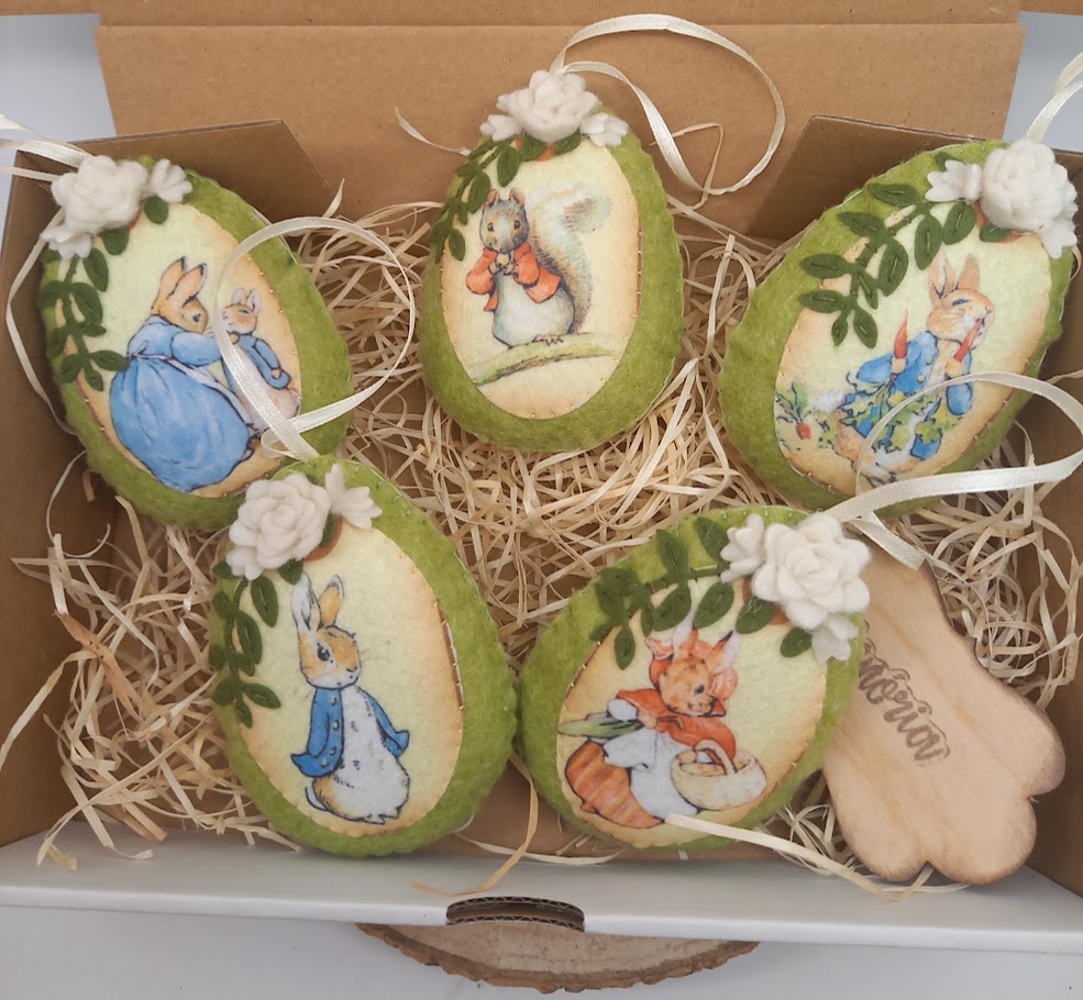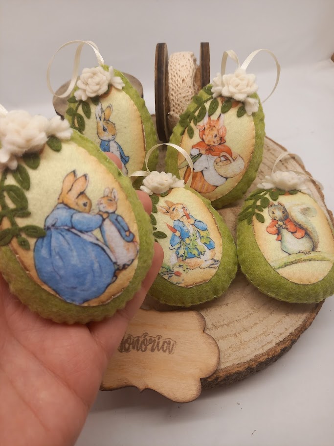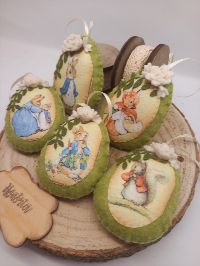 Filcből kézi varrással készült, húsvéti tojások.