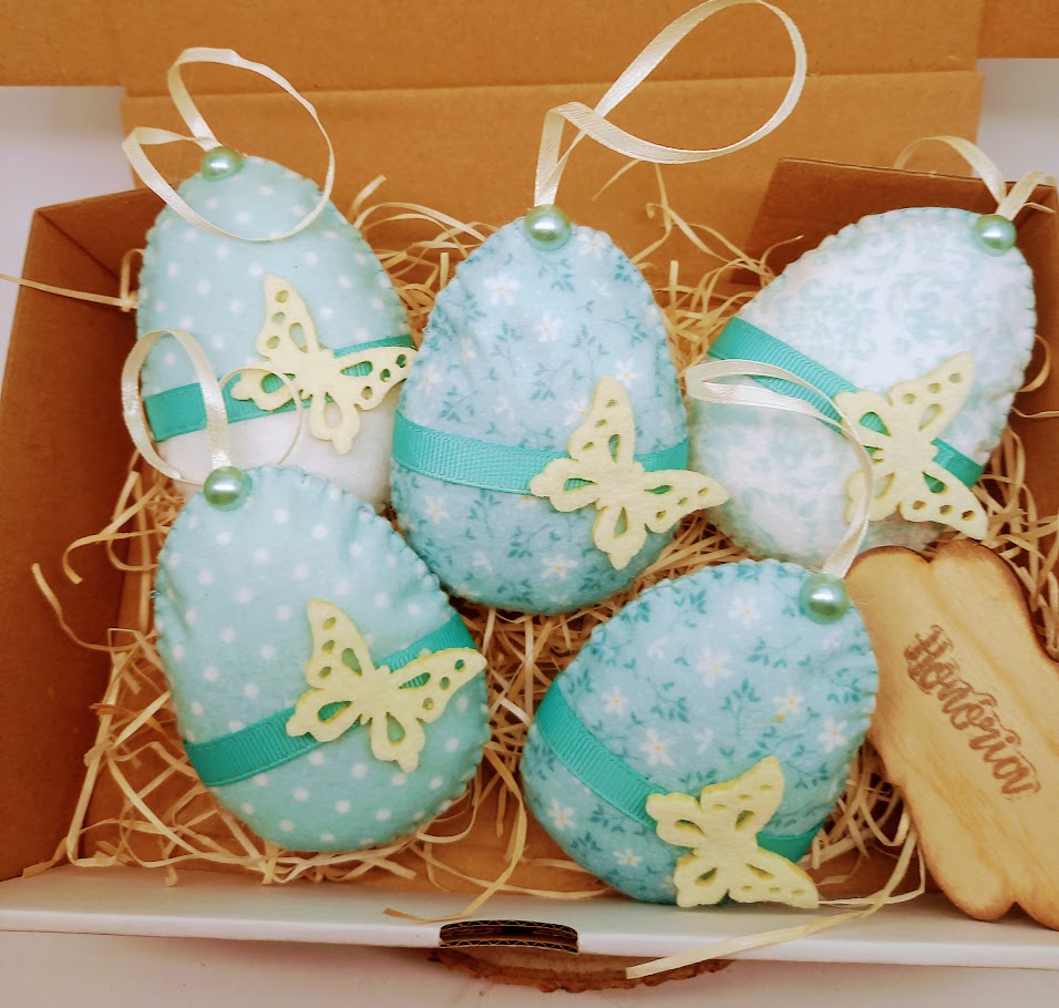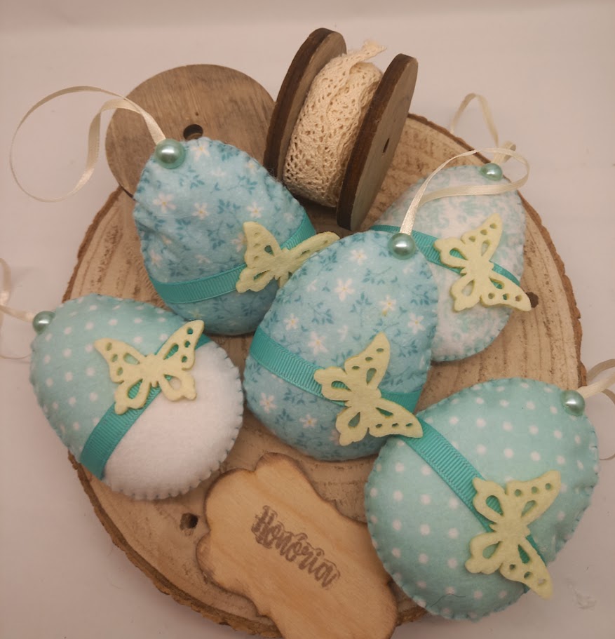 Filcből kézi varrással készült, húsvéti tojások.